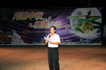 2011年9月13日農(nóng)歷八月十六晚上7:30-9:30,“月圓中秋、情滿金馬”員工中秋追月晚會(huì)以情相聚,在燈籠的點(diǎn)點(diǎn)暖光中,公司職工及家屬將近600人聚首長(zhǎng)江水世界,在滿載金馬濃情的節(jié)目中共度追月良辰。