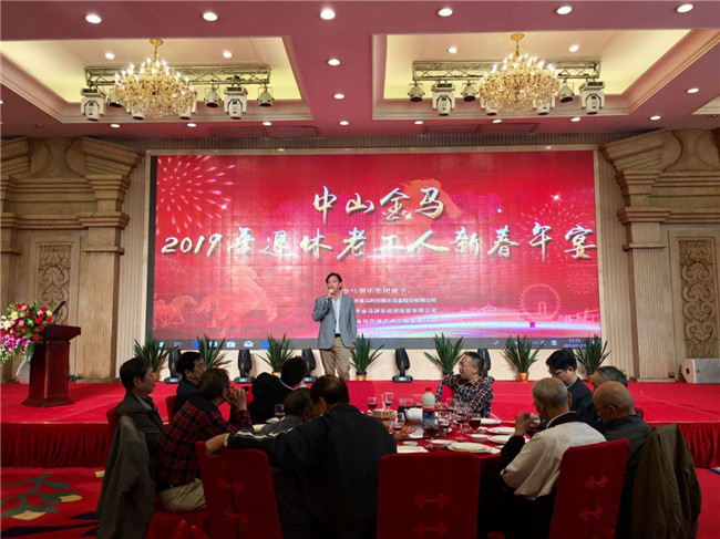 鄧董事長代表公司為退休老工人送上了新春祝福,向大家介紹了金馬在過去一年里的經(jīng)營發(fā)展業(yè)績,并表示金馬的今天是靠一代代金馬人拼搏實干換來的,是一代代金馬人真情奉獻的結(jié)果,隨后公司老領(lǐng)導李主席講話,他高度贊揚了公司發(fā)展的勢頭,并祝愿在座所有金馬人身體健康、長命百歲、共見金馬騰飛!