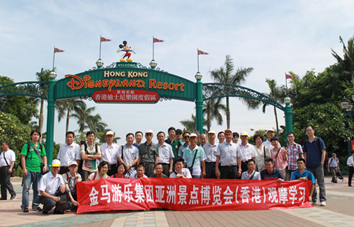 觀展人員先行參觀了國際游協(xié)亞洲展,隨后前往迪士尼作實地考察。在香港展現(xiàn)場,來自世界各地共275家企業(yè)參會布展,最新的行業(yè)資訊都在這超過6000平方米展會會場上觸手可及。在本次亞洲展上,金馬設立了展示攤位,其騰飛又富有創(chuàng)造力的造型、翔實生動的設備圖片展示、熱情親切的招待讓到場的客戶倍感滿意。觀展后,管理人員及技術人員一行到香港迪士尼觀摩,實地考察了該主題樂園的環(huán)藝工程、游樂設備等,取得了良好的效果,對今后各部門的工作帶來了有益的啟發(fā)。