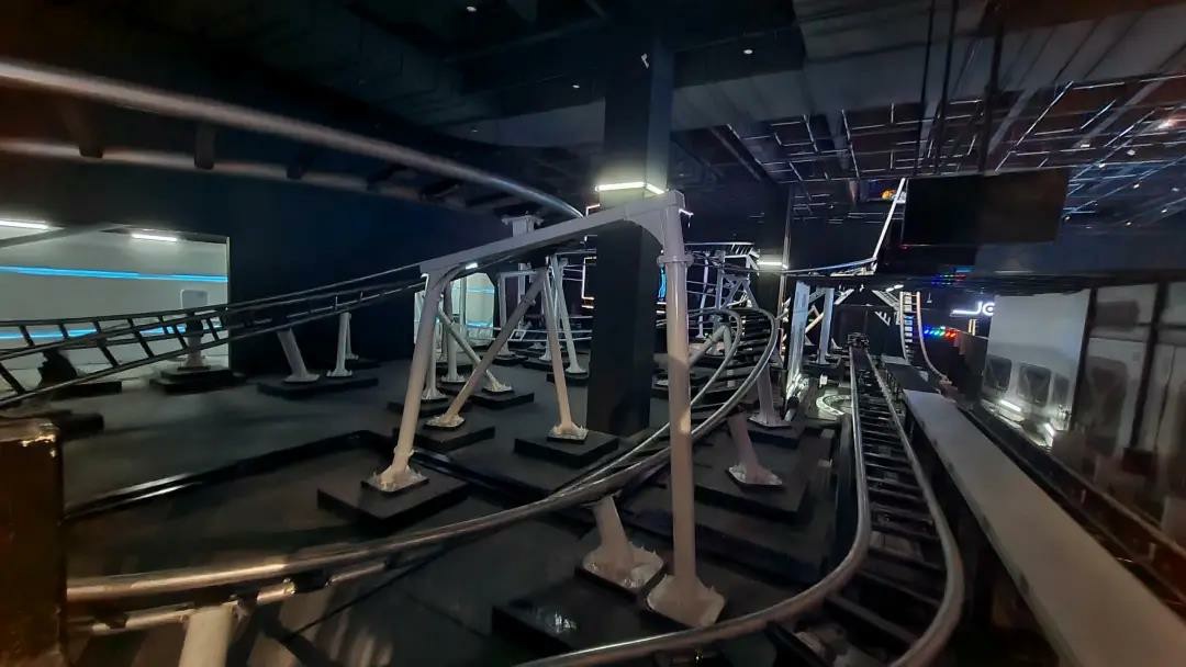 “炫酷飛馳”全程位于室內(nèi),其游玩軌跡設(shè)計也是元素豐富、處處用心,除了兩段彈射發(fā)射的極致體驗(yàn)外,還結(jié)合了換軌、3段U型回蕩的軌道,值得一提的是,該過山車的車體是采用無動力自旋式車體,配合腿部壓桿,極大提升了乘客的自由感和舒適度,游玩過程中游客相對而坐,看不到軌道盡頭,游客在未知的旅途中完美體驗(yàn)到了往復(fù)彈射、貼地高速彎道,扭轉(zhuǎn),側(cè)掛,S彎扭轉(zhuǎn)等這些現(xiàn)代大型過山車的游玩元素,結(jié)合“聲、光、電”的造景,創(chuàng)造了十分復(fù)雜而驚艷的乘坐體驗(yàn)!