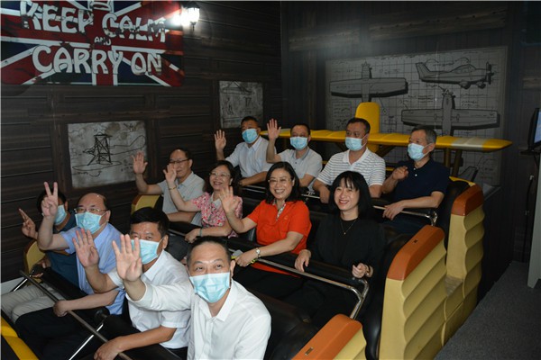 座談會上,考察團(tuán)一行觀看了公司和最新的產(chǎn)品介紹,并對應(yīng)用了電磁彈射技術(shù)、AR、VR技術(shù)的創(chuàng)新產(chǎn)品、高沉浸感飛行影院系列、充滿科幻未來感的黑暗騎乘系列科產(chǎn)品進(jìn)行了深入了解,聽取了金馬游樂在技術(shù)研發(fā),科技創(chuàng)新,雙輪驅(qū)動發(fā)展情況的匯報(bào),對公司就科技引領(lǐng)產(chǎn)業(yè)集群、創(chuàng)新謀求開放合作等方面提出了建議,期望金馬游樂在文化和科技的創(chuàng)新方面取得更大的成就。