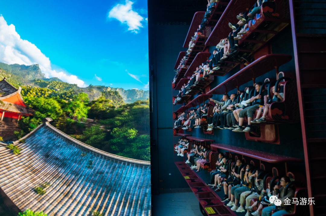 《飛越泰山》項(xiàng)目是目前全國(guó)最大的翻轉(zhuǎn)式飛行影院,2900㎡立體影院,可容納96人觀影。影視內(nèi)容以泰山及泰安地域文化為主旋律,通過多自由度動(dòng)感座椅與巨幕8K影視畫面結(jié)合,令游客仿佛乘坐飛行器置身高空凌空飛翔,從云海出發(fā),飛越泰山、泰安老街、天平湖景區(qū)等場(chǎng)景。飛越視角高低快慢,配合噴氣、噴水等特效,讓游客以虛擬沉浸方式飽覽五岳獨(dú)尊的壯麗巍峨。