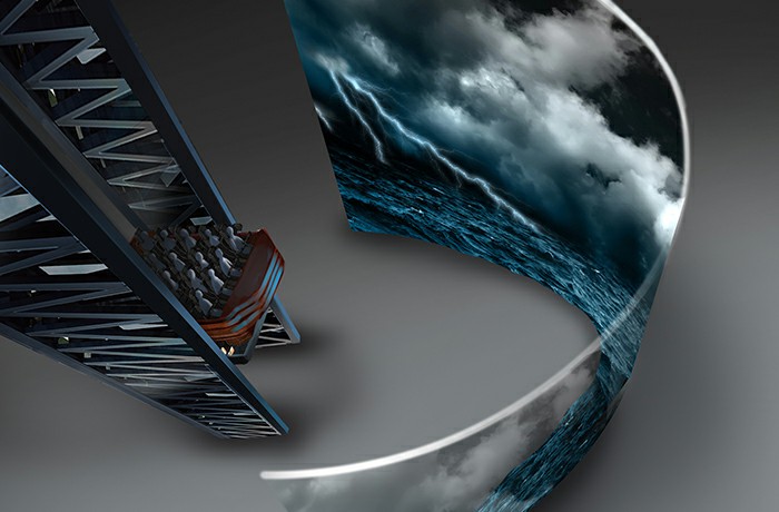 本項(xiàng)目由傳統(tǒng)的激流勇進(jìn)與影視元素相結(jié)合,船體造型新穎,此項(xiàng)目的車體運(yùn)行設(shè)有俯沖、傾斜、速降等元素,讓游客沉浸于驚險(xiǎn)刺激的游樂(lè)體驗(yàn)中。