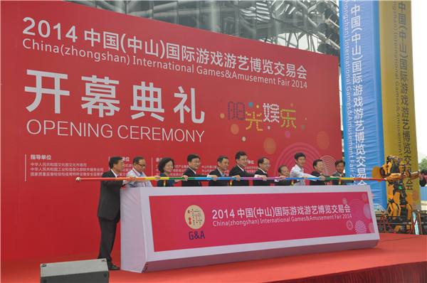 10月23日,第七屆中國(中山)游戲游藝博覽交易會在中山市博覽中心盛大舉行。開幕式上,“2014年游戲游藝優(yōu)秀產(chǎn)品文化創(chuàng)意團隊獎”進行揭曉,金馬“摩天輪”項目贏得了嘉獎表彰。開幕式后,中山市副市長陳良賢先生親臨游博會考察,領(lǐng)導一行首先到我司展位參觀,鄧志毅董事長一路為市長介紹,談及金馬創(chuàng)意高科技產(chǎn)品轉(zhuǎn)化創(chuàng)造高附加值時,市長豎起了大拇指并連連稱贊金馬為中山市游戲游藝行業(yè)做出了很好的表率。
