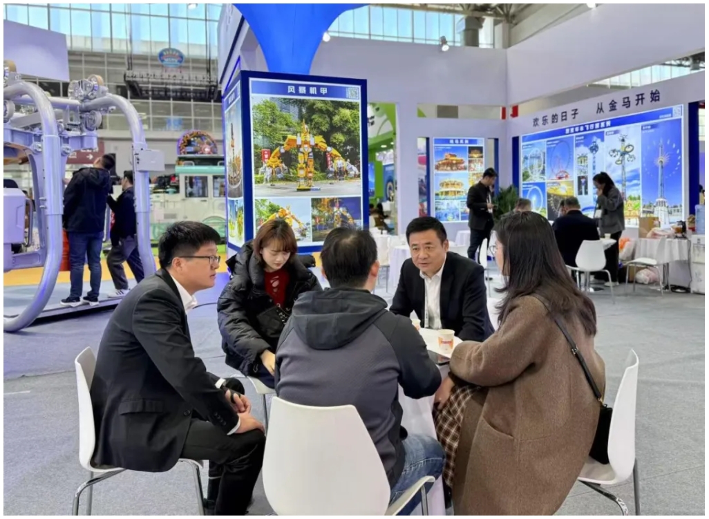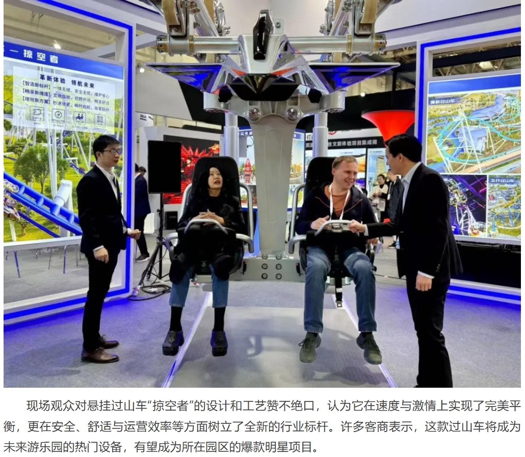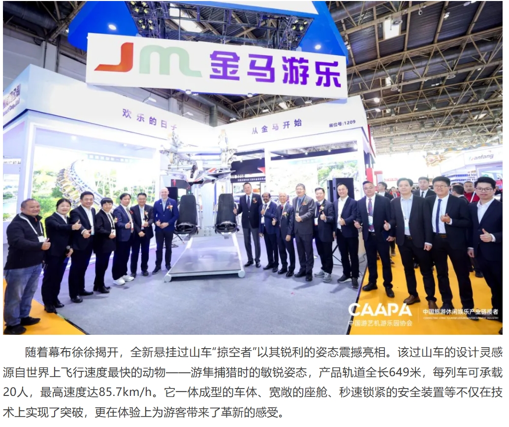 3月19日,2025 CAAPA北京展盛大開幕,展會首日,金馬游樂舉辦了主題為“革新體驗(yàn),領(lǐng)航未來”的新品揭幕活動,為全新懸掛過山車“掠空者”揭開神秘面紗。活動現(xiàn)場人頭攢動,氣氛熱烈,中國游藝機(jī)游樂園協(xié)會會長姚軍、副會長戎志剛、TEA(主題娛樂協(xié)會)董事會主席Matt Barton、印度游協(xié)會長VGP Ravidas等行業(yè)重要領(lǐng)導(dǎo)和嘉賓齊聚一堂,共同為這款過山車揭幕。他們的到來不僅為活動增添了光彩,也彰顯了金馬游樂在行業(yè)內(nèi)的強(qiáng)大影響力。